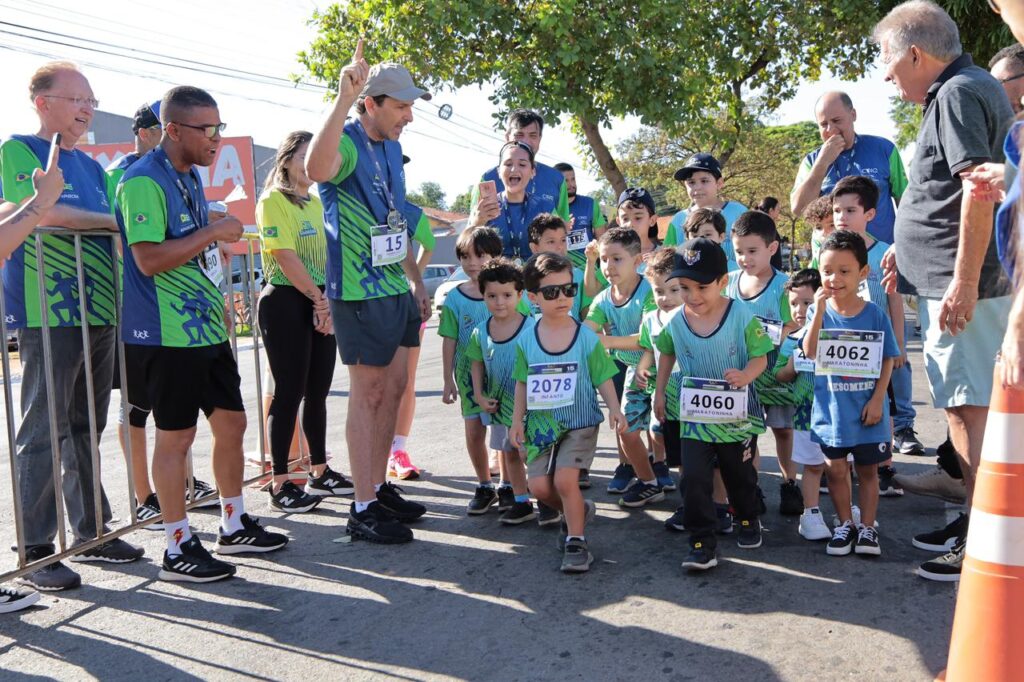 Após a largada principal, entre as chegadas dos corredores adultos, a tradicional maratoninha infantil reuniu dezenas de crianças e familiares em um momento de incentivo ao esporte desde cedo.