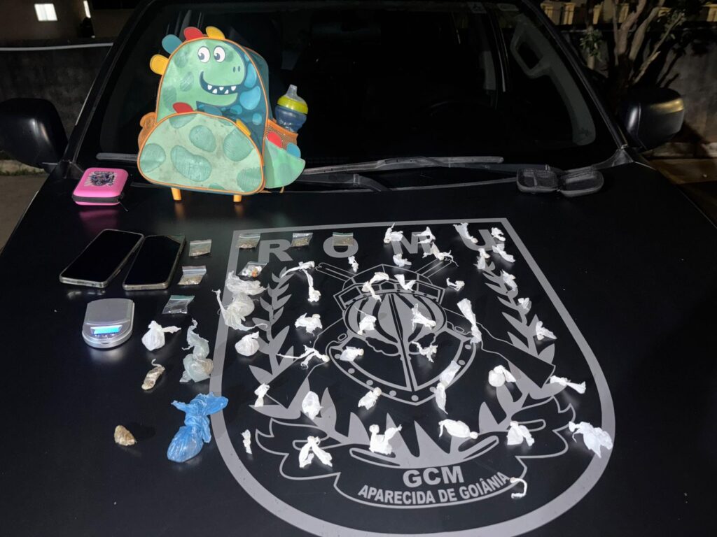 Durante a revista, foram encontradas porções de maconha e crack já fracionadas para venda, além de uma balança de precisão e três celulares utilizados no esquema criminoso. Parte do entorpecente estava escondida dentro de estojos guardados na bolsa infantil pertencente ao filho do casal, que testemunhava a prática ilícita.