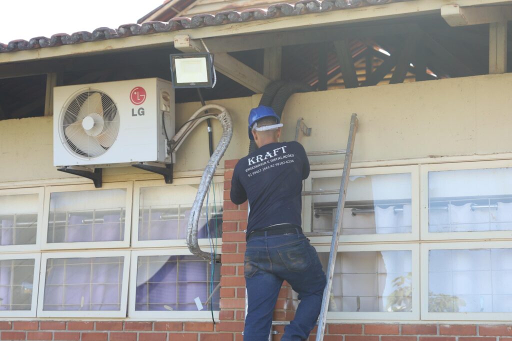 A administração atual acelerou a instalação de ar-condicionado nas 94 escolas da rede de Aparecida. Em julho deste ano, 60 escolas e CMEIs já estavam com as salas climatizadas. O trabalho segue para concluir a instalação nas demais unidades.
