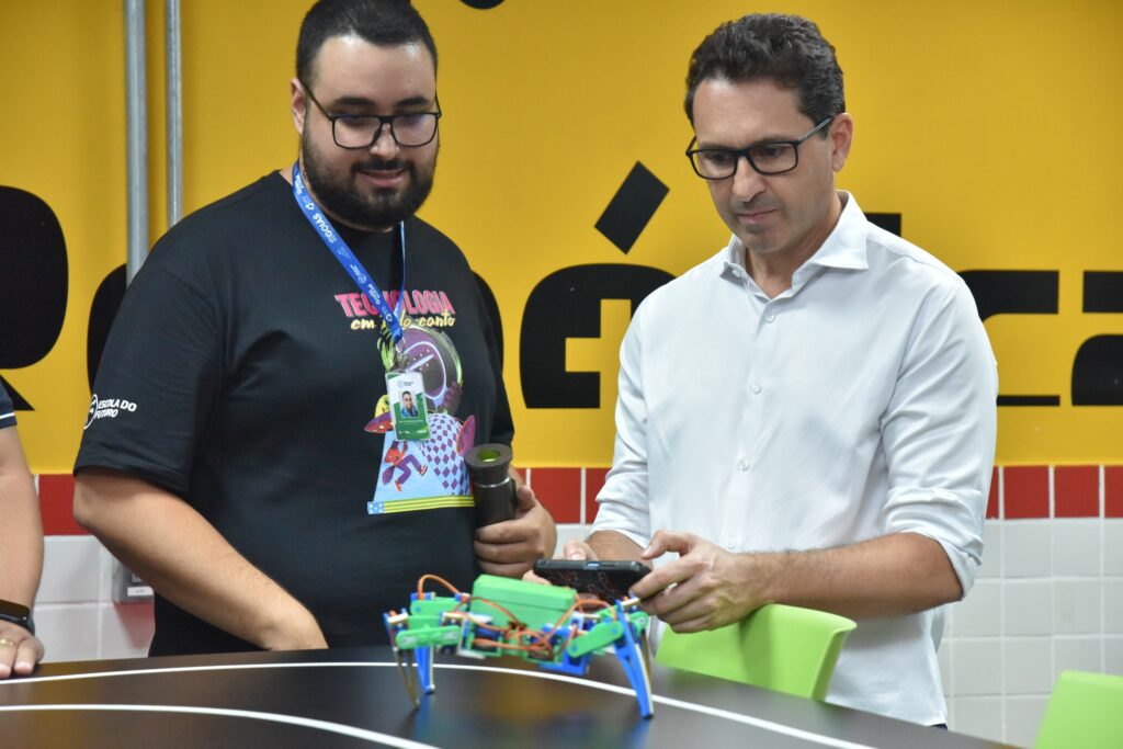 Foto: Jhonney MacenaO prefeito de Aparecida, Leandro Vilela, e a secretária de Educação, Professora Núbia Farias, enalteceram o engajamento dos alunos da rede municipal e o potencial criativo deles demonstrado em projetos de tecnologia e inovação apresentados nesta segunda (1º), na Escola do Futuro Luiz Rassi, no Buriti Sereno. A ação ocorreu numa parceria inédita estabelecida pelo município com o Governo de Goiás, gestor da Escola do Futuro.