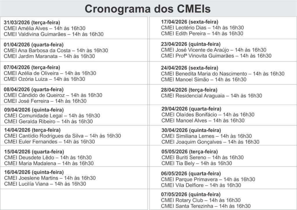 A iniciativa, coordenada pela Secretaria Municipal de Saúde (SMS) em parceria com a Secretaria Municipal de Educação, integra a campanha “Vacina Sim” e levará equipes de imunização diretamente aos CMEIs e escolas conveniadas entre os meses de março, abril e maio de 2026.