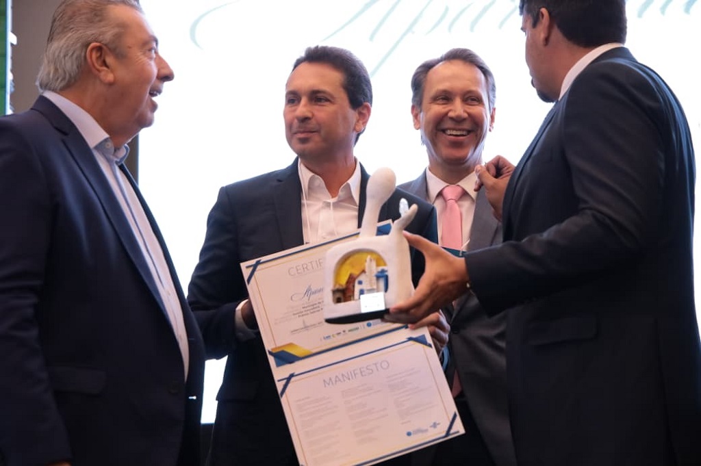O prefeito Leandro Vilela participou da entrega do Prêmio Sebrae Prefeitura Empreendedora acompanhado de secretários municipais. Ele destacou a importância da conquista.