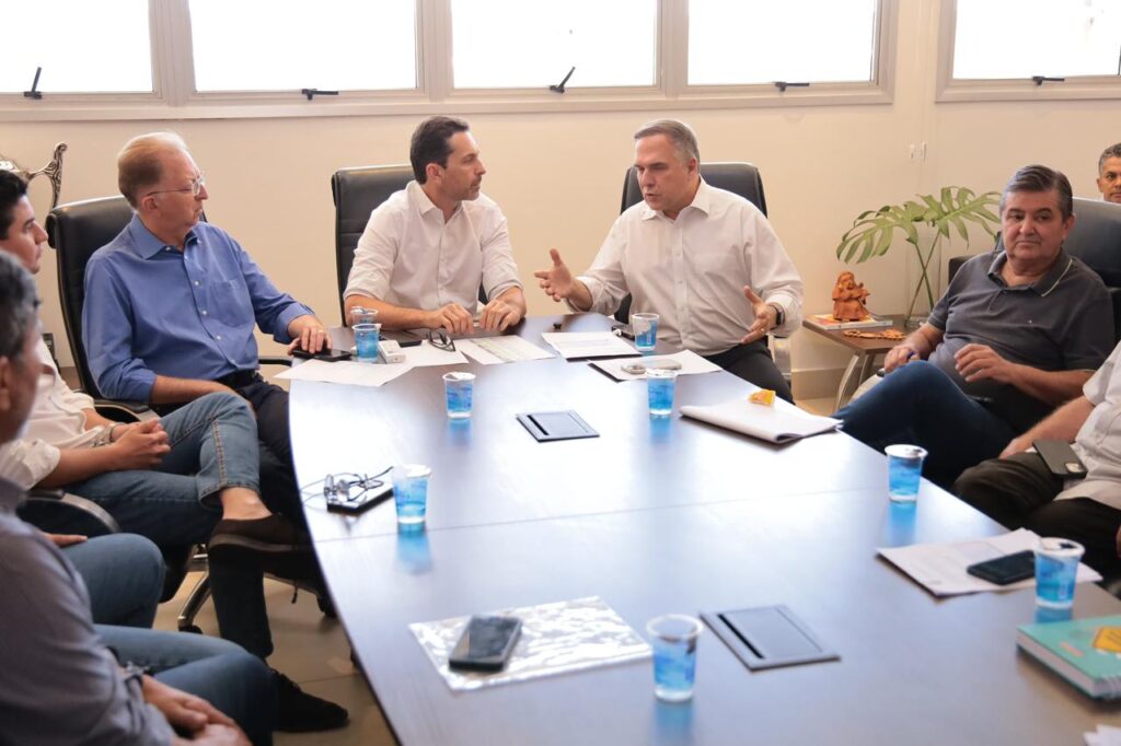 Os prefeitos de Aparecida e Goiânia, Leandro Vilela e Sandro Mabel se reuniram na manhã desta quinta-feira (23), na Cidade Administrativa Maguito Vilela, para alinhar ações conjuntas nas áreas de infraestrutura, trânsito, transporte coletivo, educação, mobilidade e saúde.