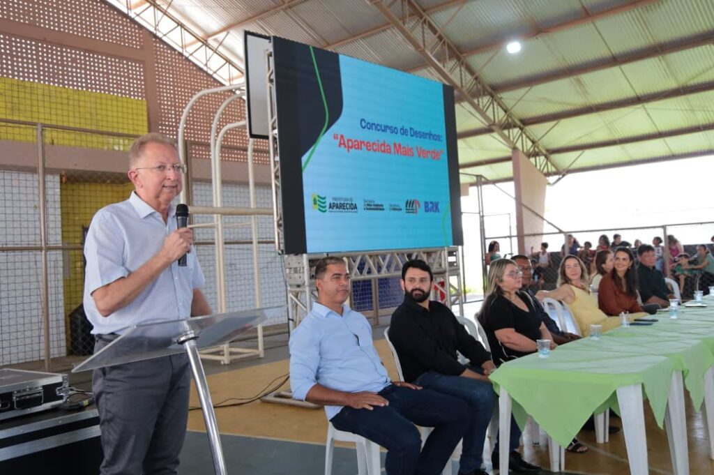 Foto: Rodrigo Estrela/Secom AparecidaA Prefeitura de Aparecida de Goiânia realizou, nesta sexta-feira (12), na Escola Municipal Maria Gomes da Silva, no Setor Colonial Sul, a cerimônia de premiação do concurso de desenhos “Aparecida Mais Verde”. O evento marcou também o lançamento do Calendário Ambiental, que será produzido com os desenhos vencedores e distribuído como ferramenta educativa e de conscientização ambiental nas unidades da rede municipal.