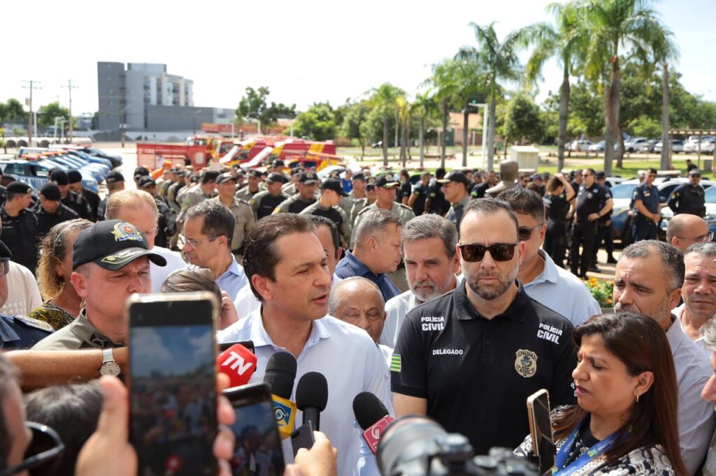 Foto: Rodrigo Estrela - Secom AparecidaO prefeito de Aparecida de Goiânia, Leandro Vilela, ao lado do vice-prefeito João Campos e do comandante do 2º Comando Regional da Polícia Militar (CRPM), coronel Lucas Silva, lançou na manhã desta sexta-feira, 10, em Aparecida, a Operação Tiradentes 2026. O ato ocorreu na Praça da Cidade Administrativa Maguito Vilela.